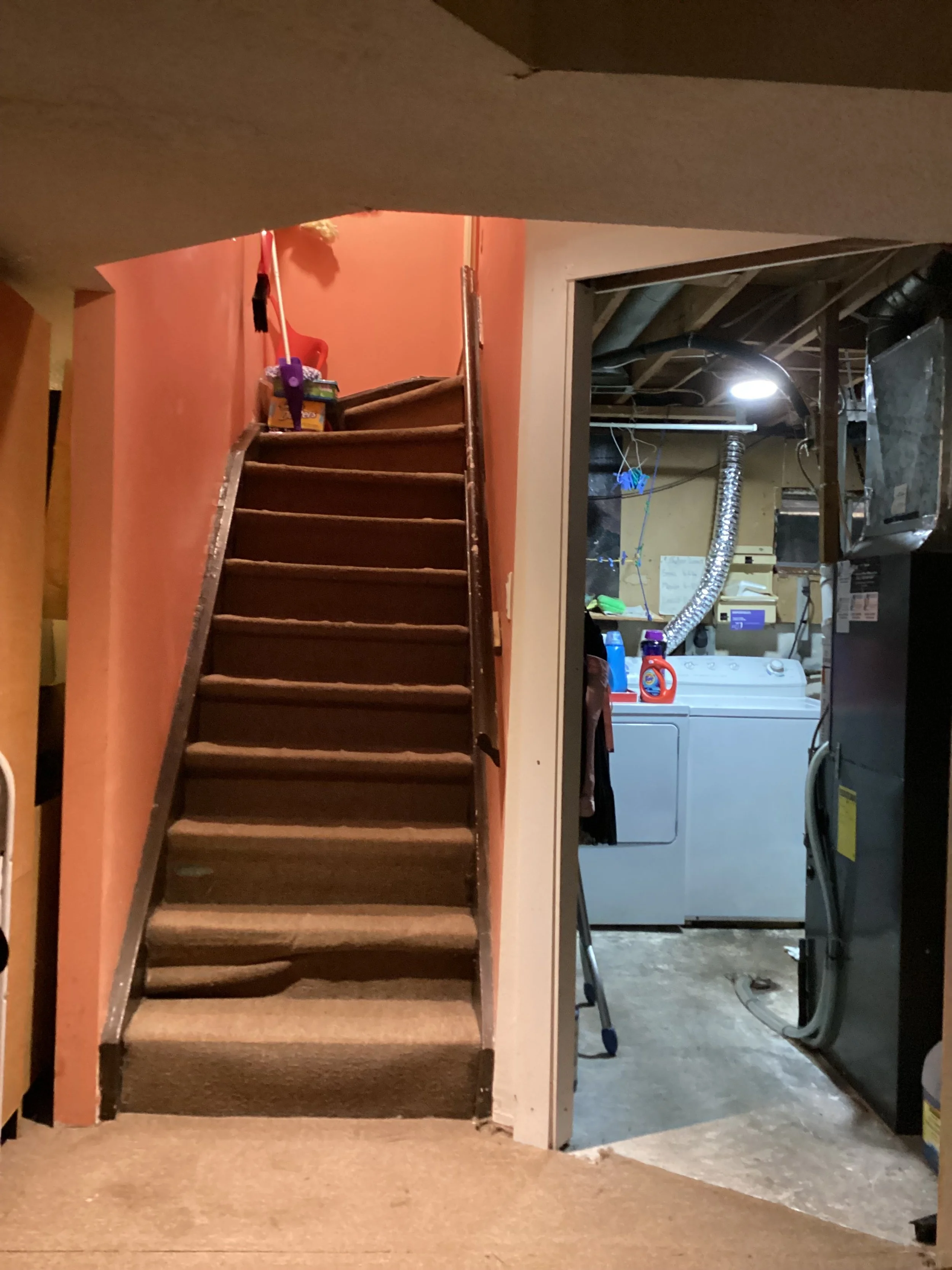 This once-unfinished basement was transformed into a warm and welcoming guest-ready space with new storage, a full bathroom, refreshed laundry area, and a cozy living zone. Thoughtful layout changes, upgraded lighting, and bold hits of colour made this lower level feel like a brand-new part of the home — perfect for visiting family and friends.