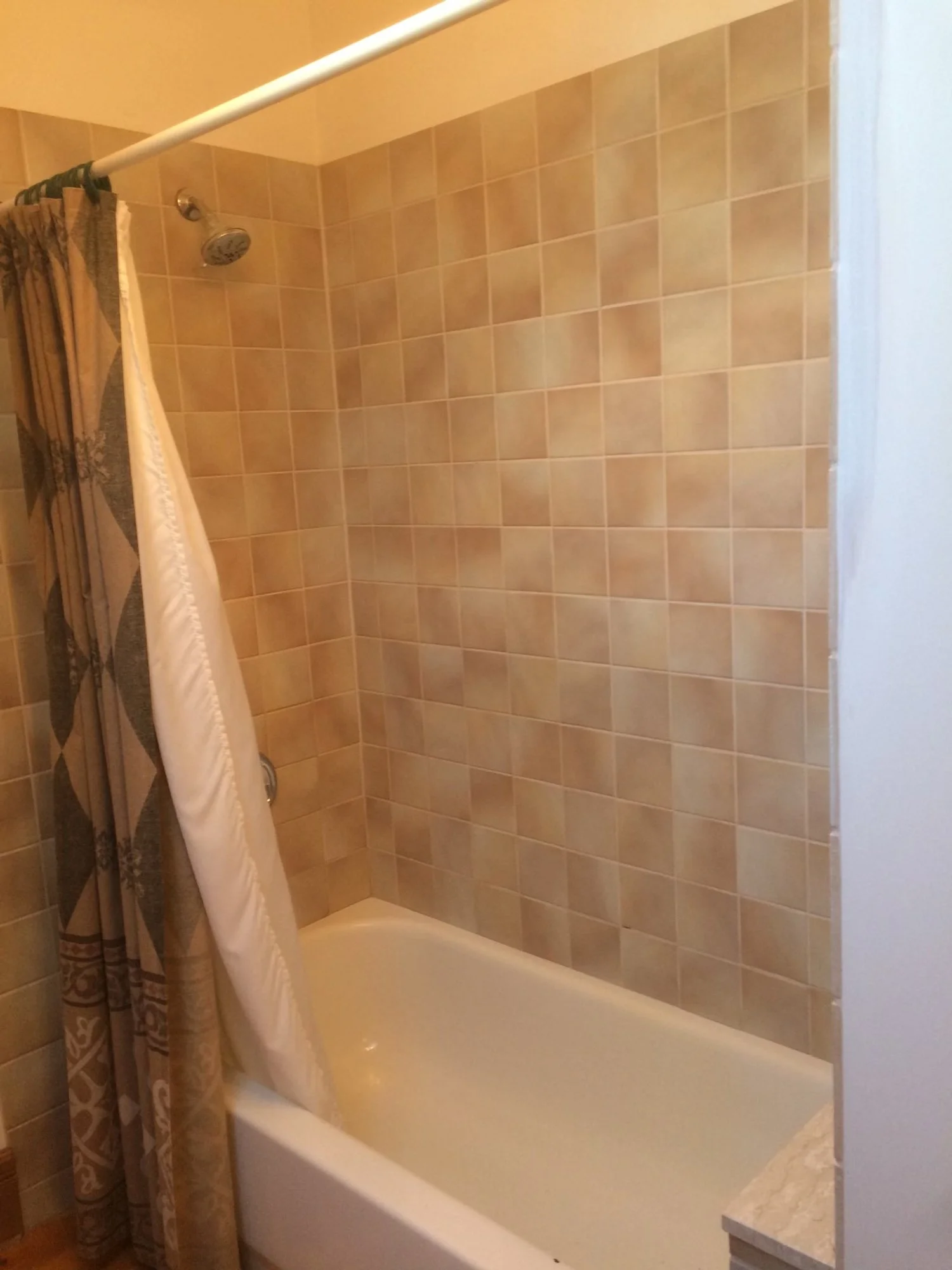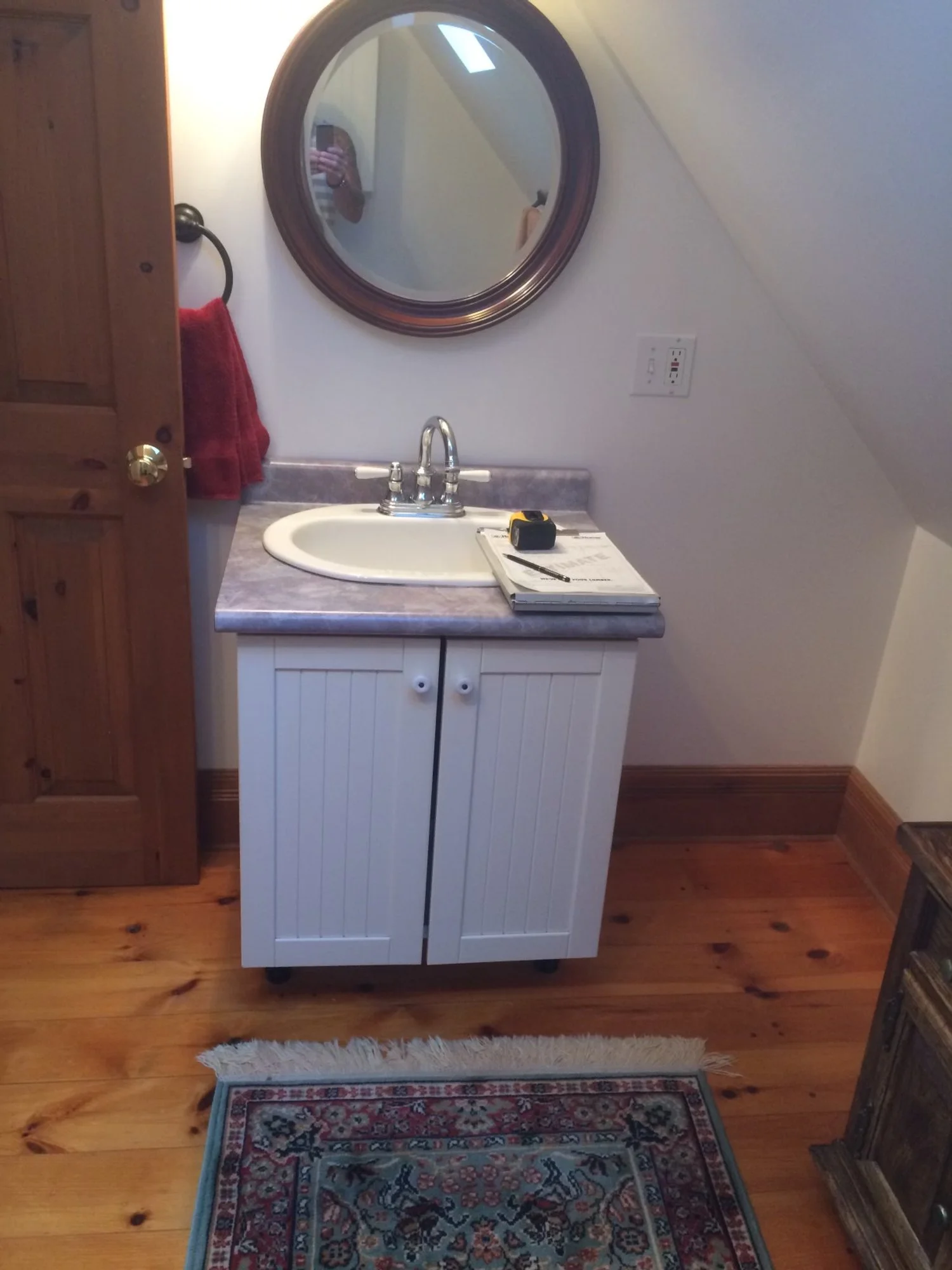 A full gut renovation transformed this dated Queensville bathroom into a fresh, spa-like retreat. With a sloped ceiling in play, we designed a custom vanity to fit the architecture perfectly while maximizing storage, adding solid wood dovetail drawers for improved organized access. A new walk-in shower with custom glass replaced the tub, featuring classic subway tile and a rain shower head. We also recessed a tall frosted glass linen cabinet with rollout trays for elegant, accessible storage. The soft white and gray palette is balanced by the warmth of the original solid wood door, a subtle but striking contrast that ties in to the logs in this log home.