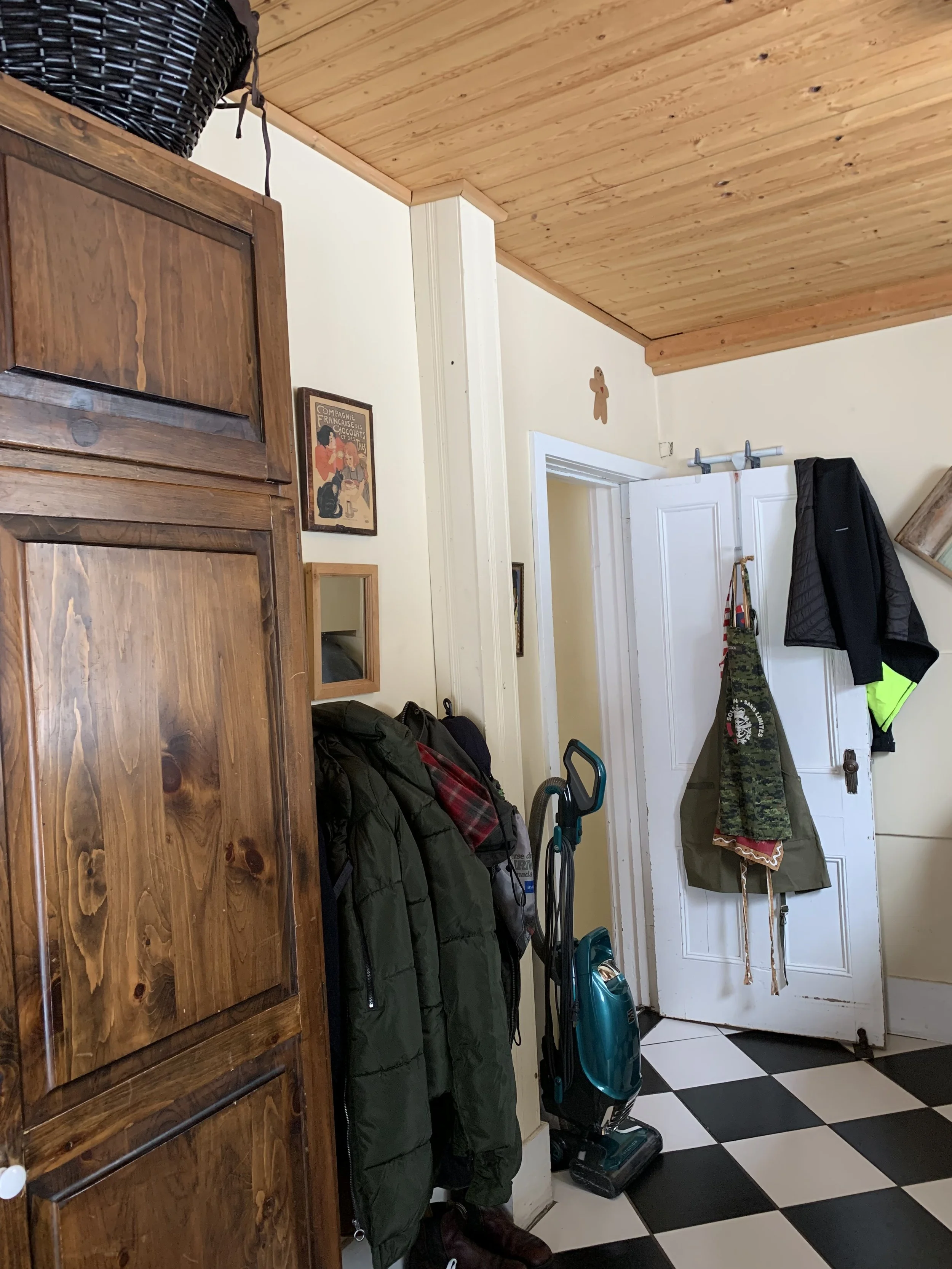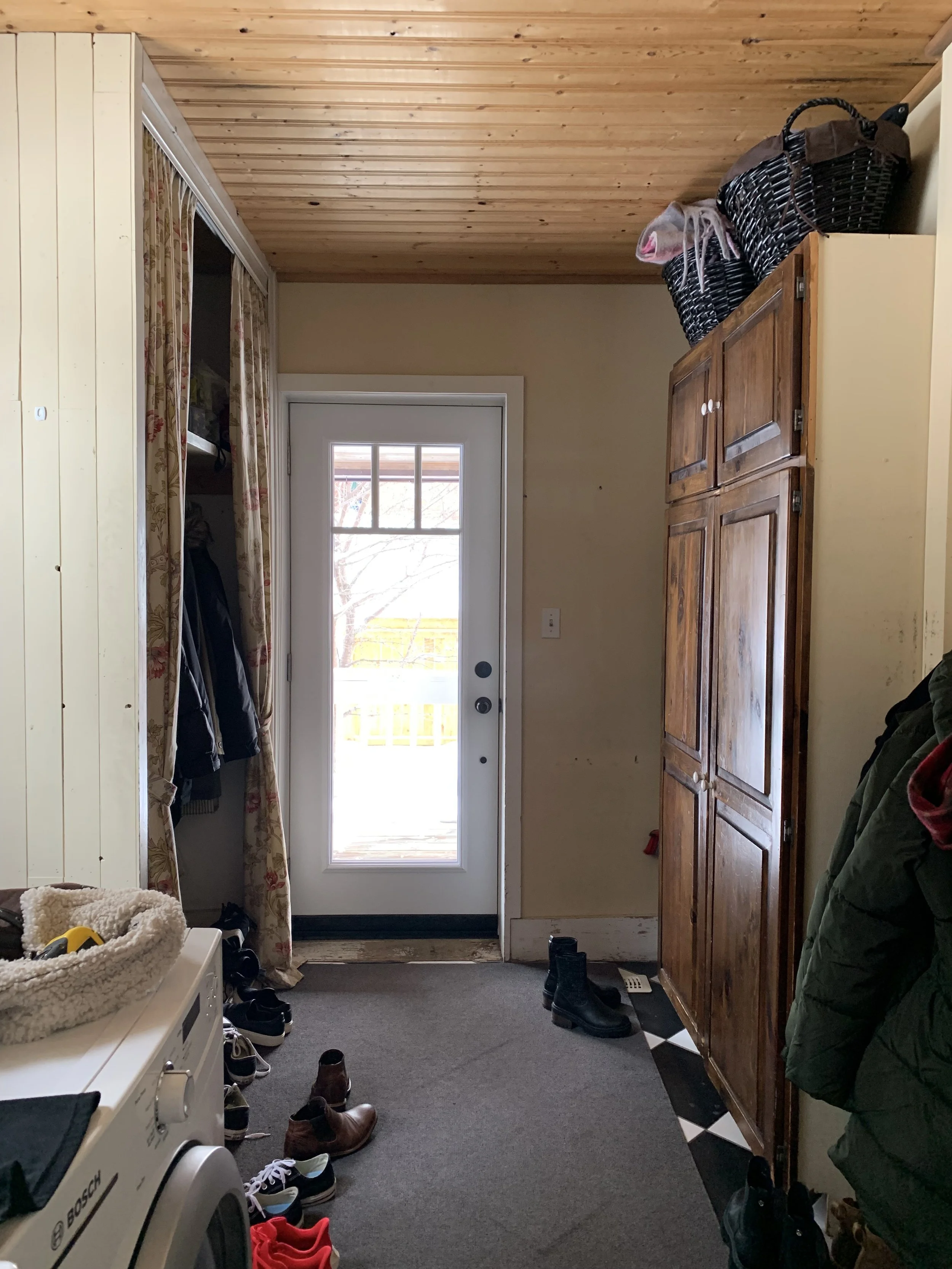 This hardworking side entrance had plenty of potential but wasn’t living up to it. We transformed the space into a charming and functional mudroom with classic period appropriate finishes, curated antique pieces, and thoughtful design details — all while honoring the character of this historic home.